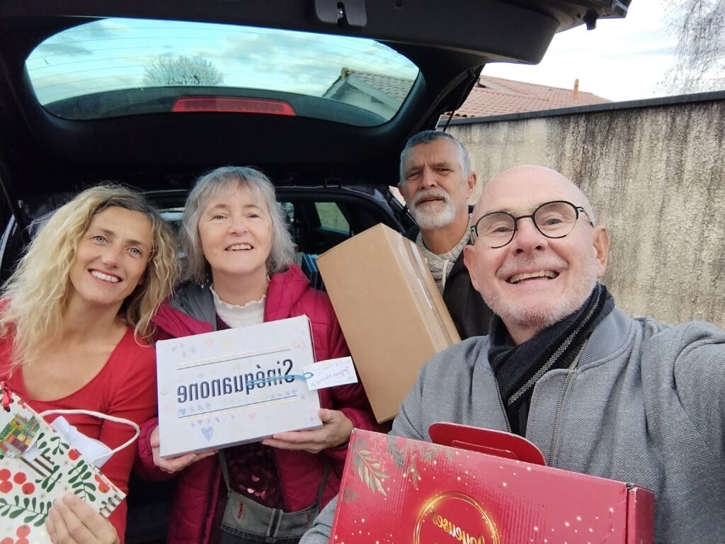: Dorothée, Catherine, Michel, Nicolas et Corinne, avec petit coup de main de Jean-Michel pour charger, mobilisée pour une magnifique tournée des boîtes solidaires ![]()